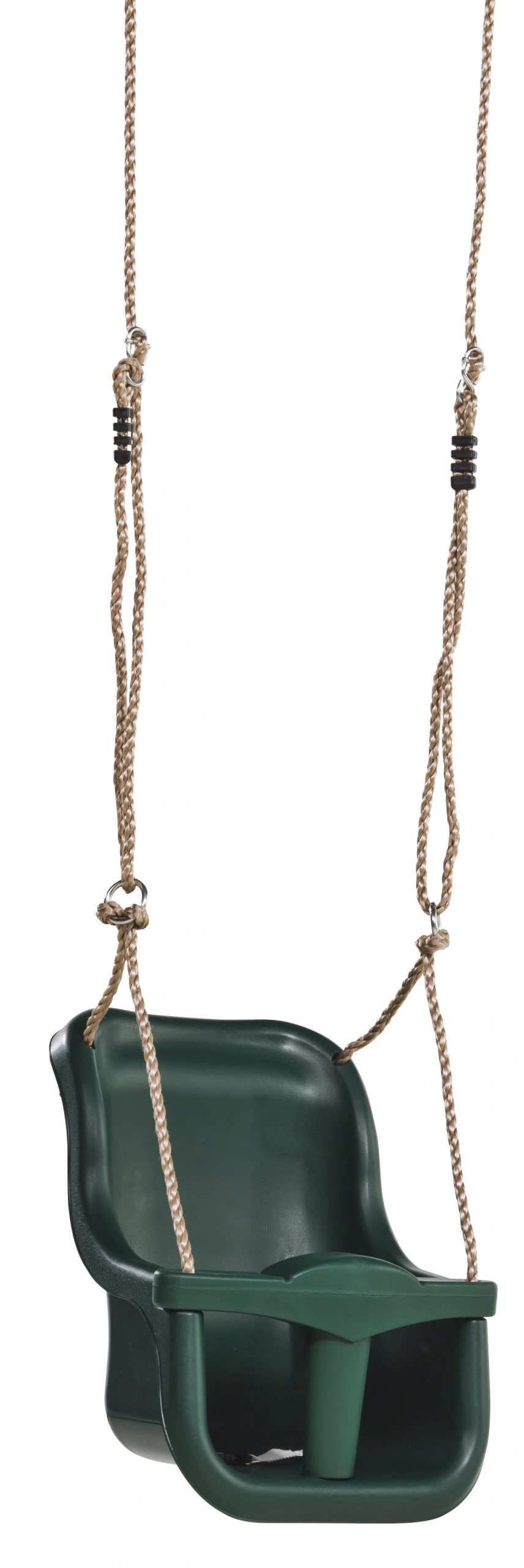 Mooie stevige kunststof peuterschommel , touwlengte verstelbaar. Het T-stuk kan omhoog geschoven worden. Gevlochten touwenset black , 12 mm., met gegalvaniseerde stelachten en ophangogen. Touwverbindingen met kunststof lassen. Deze touwen zijn niet alleen heel veilig maar voelen ook heel zacht aan.