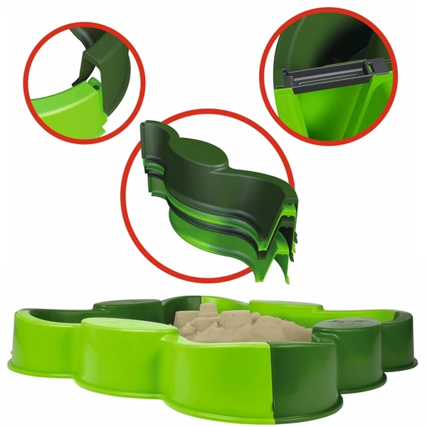 Dankzij de afgeronde hoeken en zitvlakken is de zandbak veilig, maar vooral gemakkelijk in gebruik. De zandbak is geschikt voor kinderen vanaf 12 maanden. Door het handige klik-systeem is de zandbak gemakkelijk op te zetten, maar ook uit elkaar te halen.