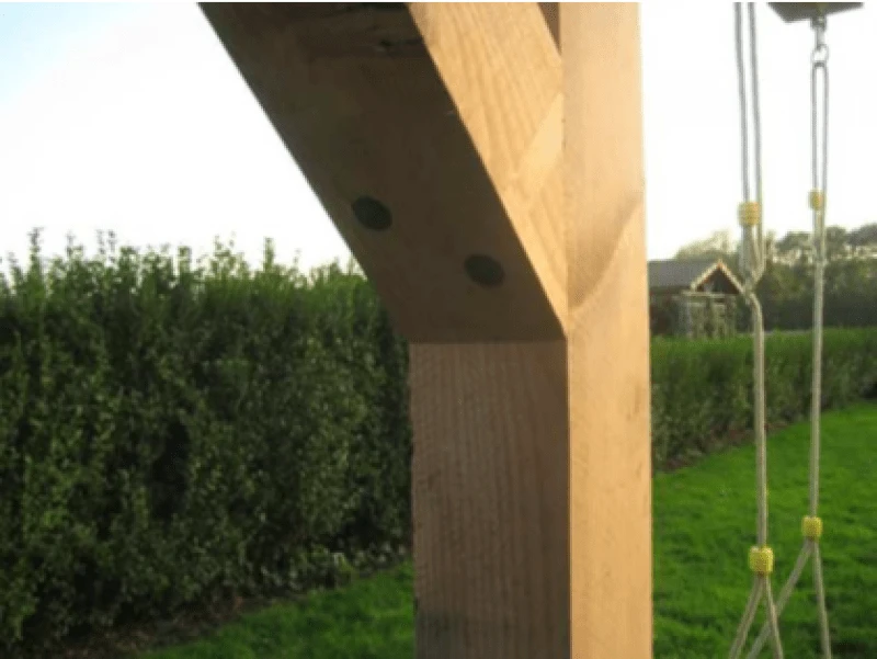 Schommelframe uit eerste klas douglas hout 145 x 145 mm. Niet geïmpregneerde uitvoering .