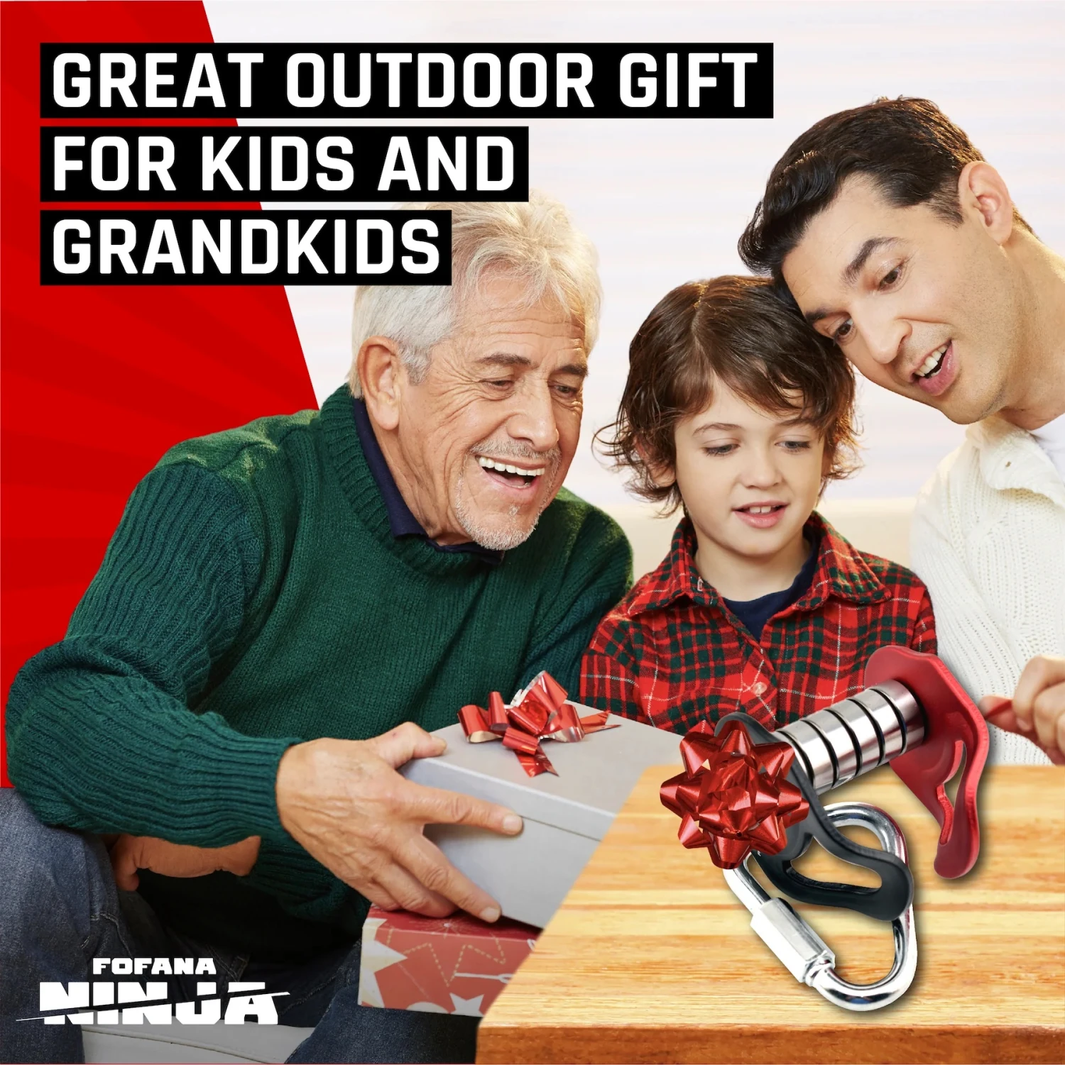Onze Ninja Obstacle Course wordt geleverd met een 20 meter lange ninja-slackline en 11 gemakkelijk verstelbare obstakels, waaronder onze nieuwe Ninja Slider. Creëer onbeperkte baanopties door de volgorde en afstand van obstakels te wijzigen. Met de mogelijkheden raak je nooit uitgekeken! Laat het plezier beginnen! Dit is een opleiding. In het begin kan het moeilijk zijn, maar geef niet op! Een superninja worden ligt binnen handbereik! Arm- en kernkracht opbouwen was nog nooit zo leuk! Zorg ervoor dat je stevige ankers gebruikt die niet bewegen wanneer de ninjabaan in gebruik is. We raden grote, gezonde bomen aan met een onderlinge afstand van 10 tot 55 voet en een diameter van 1 tot 3 voet. Begin je Ninja Warrior-training!