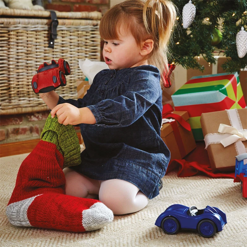 Zet je schrap, want de Green Toys Raceauto is klaar om te rollen! Deze slanke racer zal de baan verscheuren zonder de planeet te schaden. Deze coole hot rod is beter dan welke hybride dan ook en toont trots het symbool van gerecycled plastic op de motorkap. Het ultra-eco-ontwerp heeft geen metalen assen. Verkrijgbaar in rood, blauw en roze. Veilig, niet giftig; bevat geen BPA, PVC, ftalaten of externe coatings. Gegarandeerd urenlang Good Green Fun!