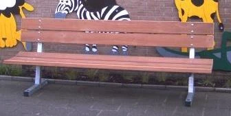 Vrijstaande bank met thermisch verzinkt onderstel en bankirai balken. Stevig uitgevoerd met een heerlijke ronding in het zitgedeelte. Lengte 240 cm.