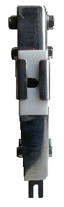 RVS kabelbaanwagen voorzien van remsysteem. 3 mm RvS plaat, nylon gelagerd. Voorzien van vorkbevestiging voor het gemakkelijk monteren van de ketting van pendelzitje.