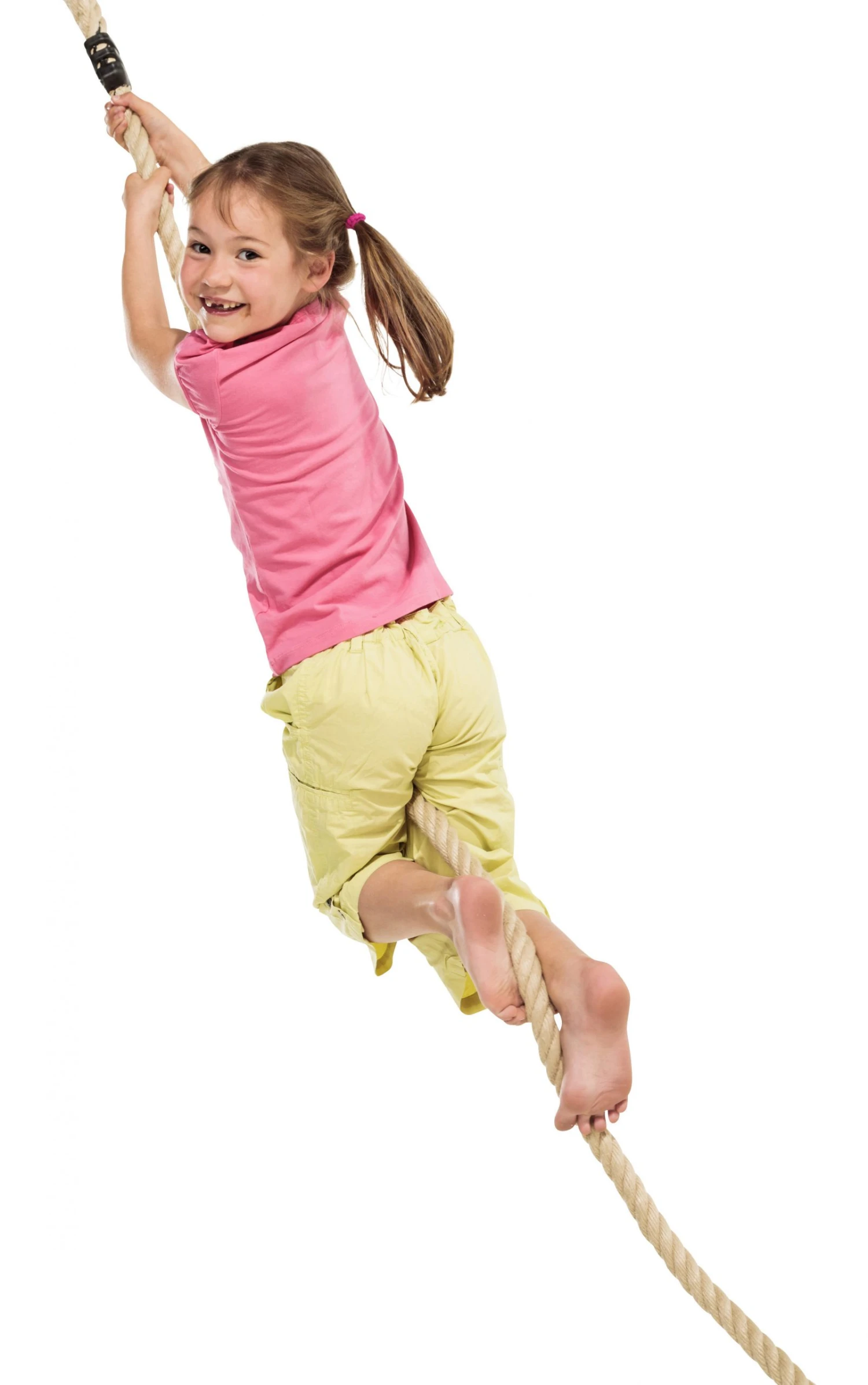 PH-touw met knopen, waardoor jonge kinderen gemakkelijker kunnen klimmen. De knopen zitten ongeveer om de 50 cm. De ophangring is uit gegalvaniseerd staal. Voorzien van een zwarte kunststof las als touwverbinding.