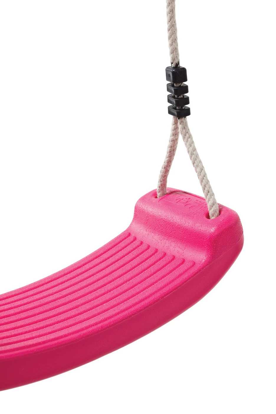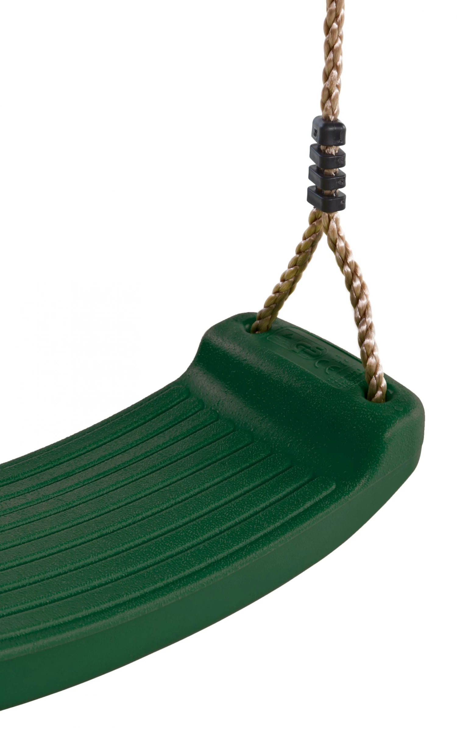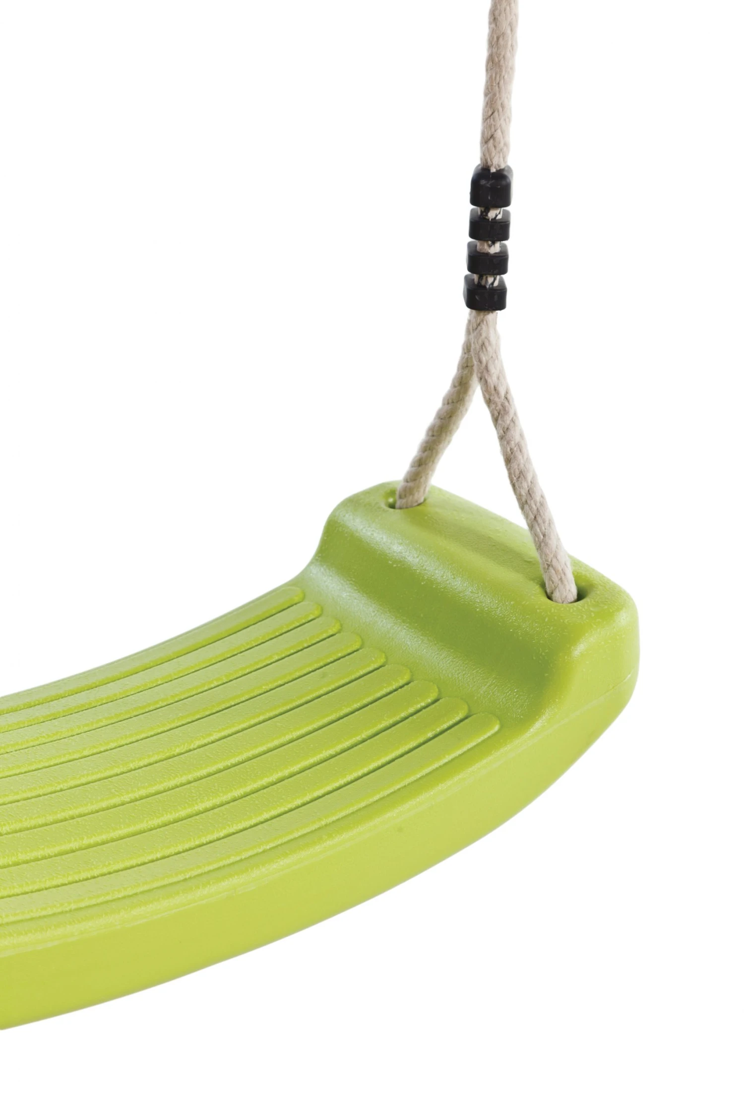 Schommelzitje van geblazen kunststof, beschikbaar in 6 kleuren en uitgerust met 12 mm. PolyHemp touwenset. De stelachten en ophangringen zijn uit gegalvaniseerd staal.
