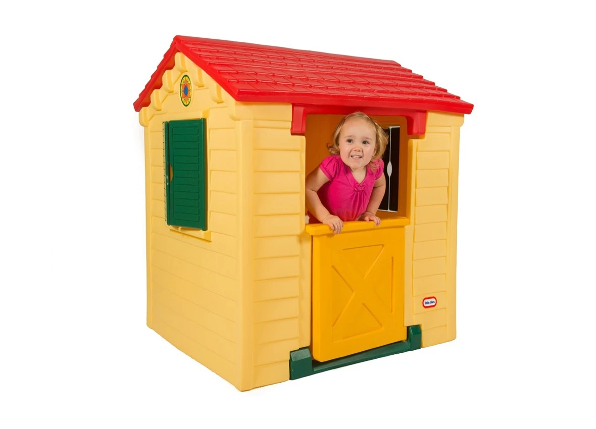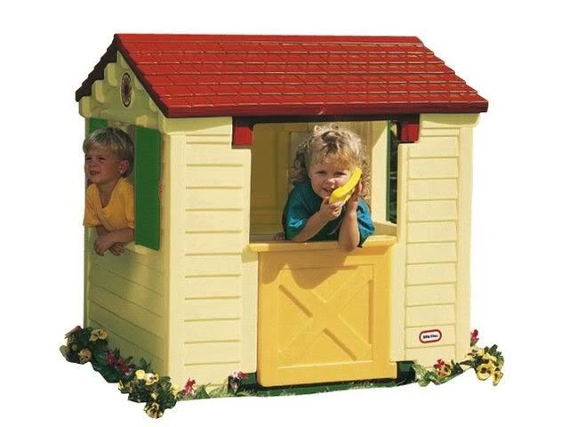 Mooi kwalitatief speelhuis, uitgevoerd met veel details. Er is een schoorsteen, het huis is voorzien van luiken voor de ramen en een openklapbare `staldeur’. Binnen is een tafel en zelfs een telefoon aanwezig.