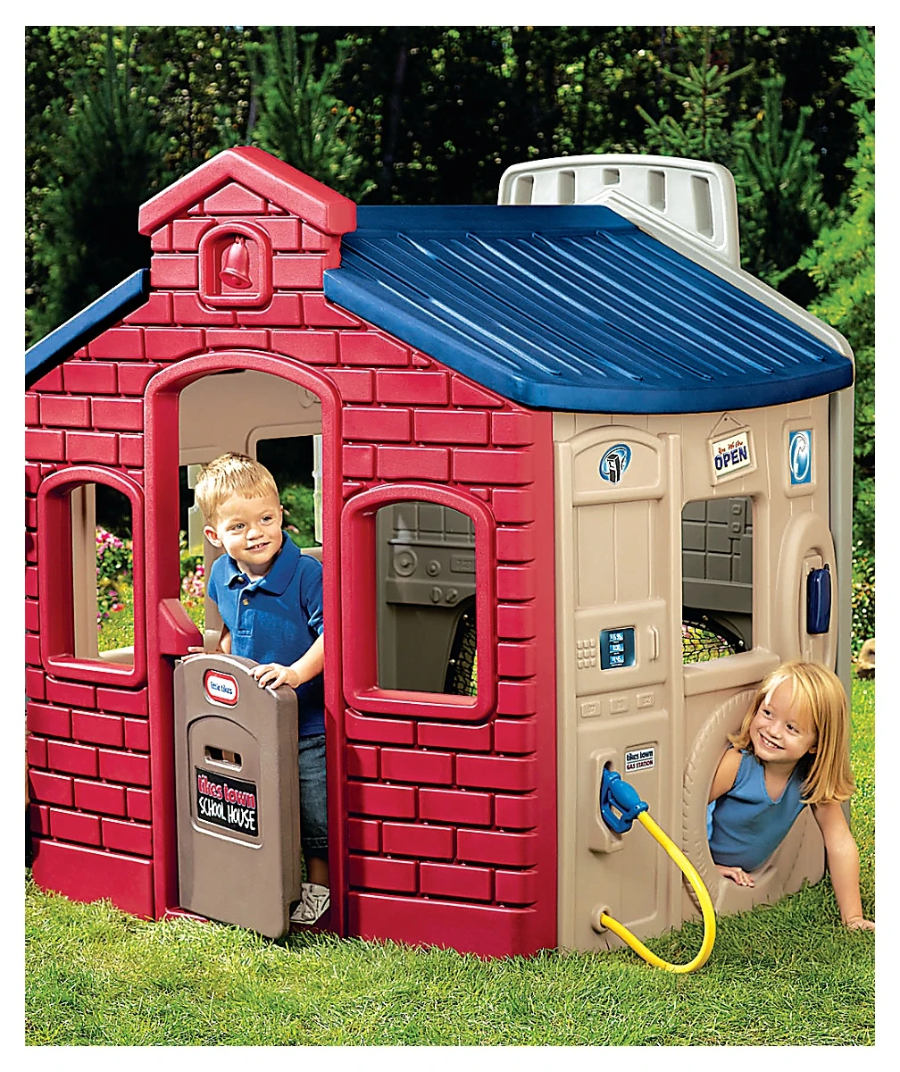 4 themawanden bieden veel extra speelplezier. Daardoor heb je met dit speelhuis meteen ook een sporthal, benzinestation, supermarkt en een schooltje in huis.