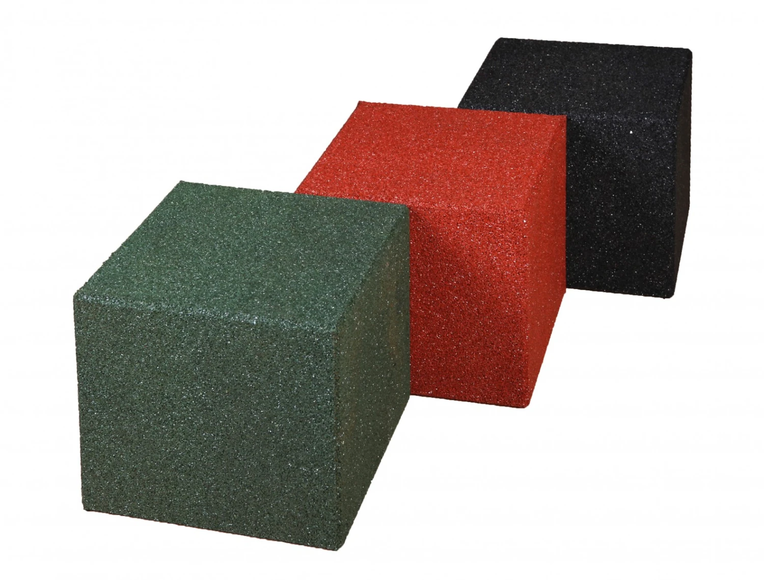 Rubber blokken zijn toe te passen als kindvriendelijke afbakening en / of zitelement. Deze zijn beschikbaar in de afm. 30 x 30 x 30 cm. Gewicht: 20 kg.