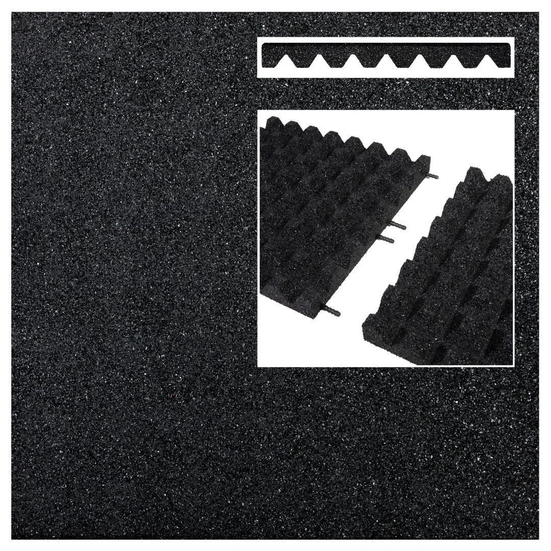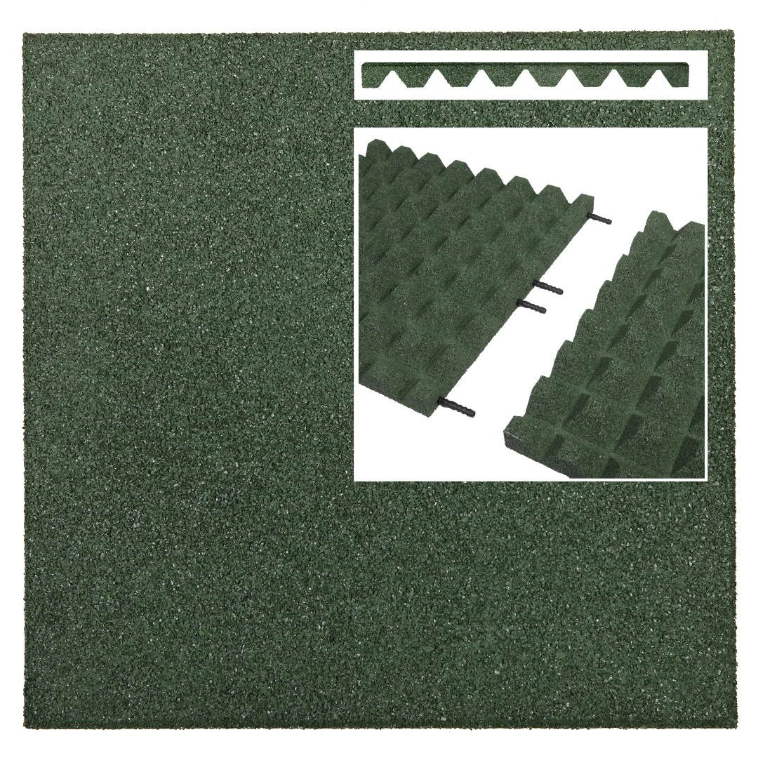 Hoogwaardige rubber speelplaatstegel met pen- gat verbinding. Hiermee kunnen de tegels onderling verlijmd worden. Hierdoor ontstaat een naadloze vloer, welke niet eenvoudig uitgenomen kan worden.