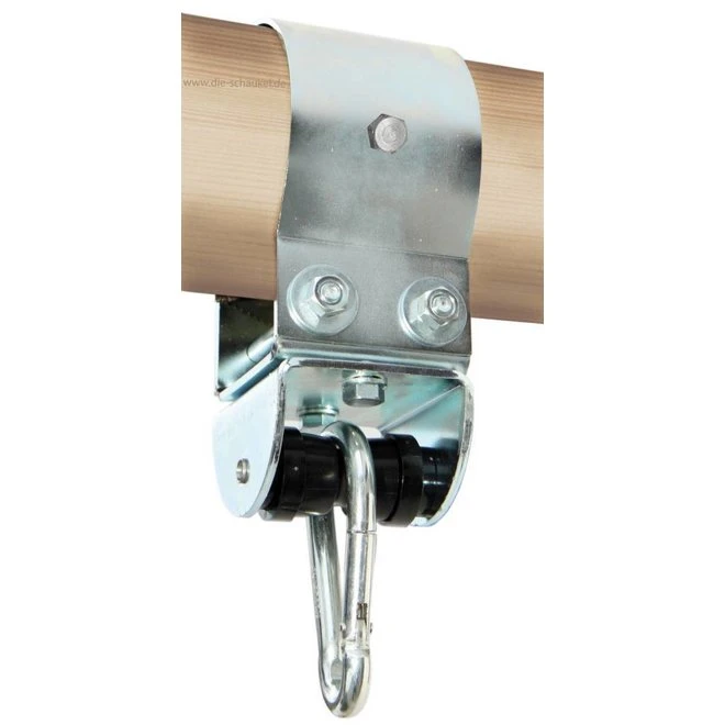 Een schommelhaak speciaal voor ronde balken met een doorsnede van 10 cm.