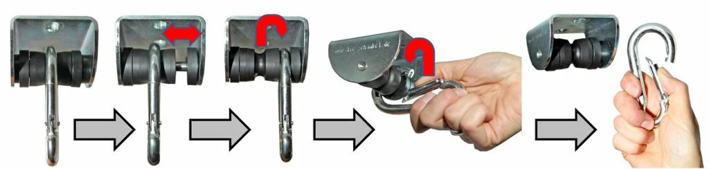 De nieuwste haak op de markt en uniek gelagerd. Door de extra gelagerde bevestiging zorgen deze haken voor een zeer lange schommelbeweging zonder enig geluid!