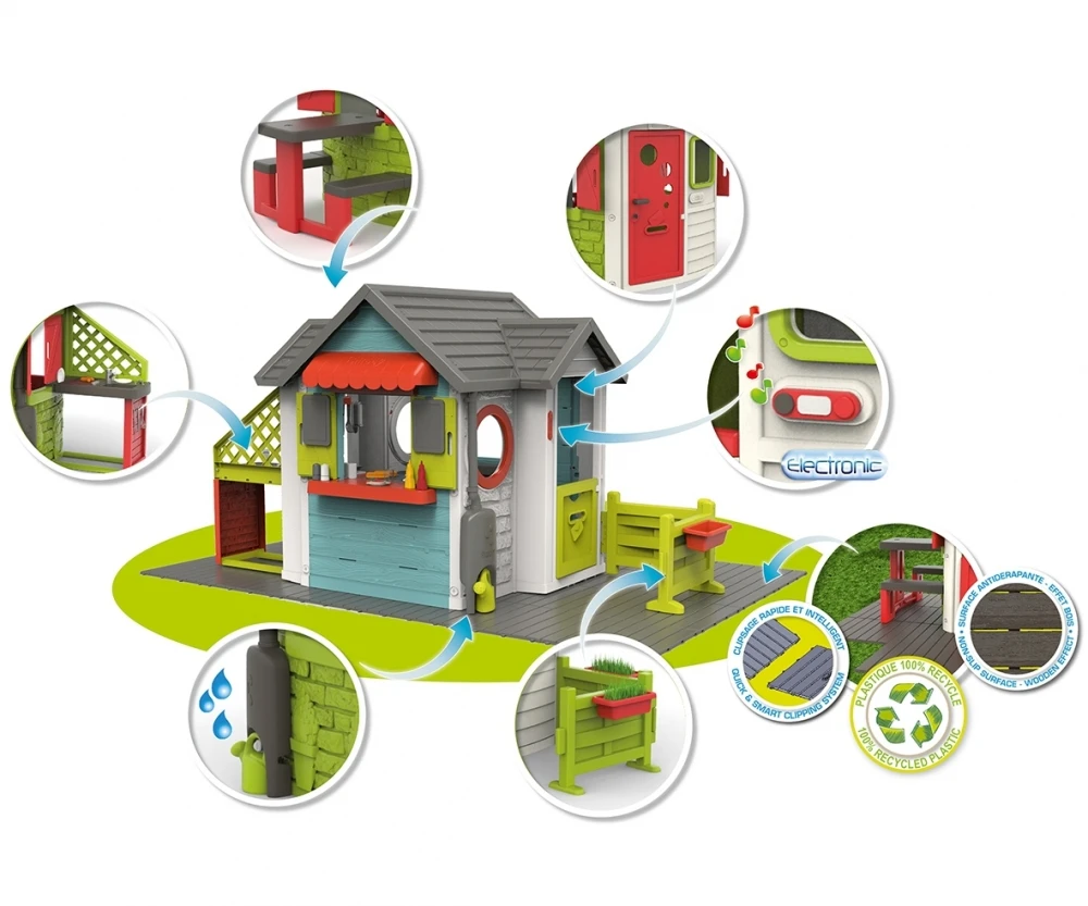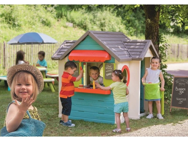 Het Chef House van Smoby is een soort van strandhuis met een keuken, snackbar en een winkeltje. Het huis is uitgerust met een halve deur, 2 ramen en 4 luiken. Er zijn ook 2 uitneembare bordjes waar je het menu of je openingsuren kan opschrijven. deze plaats je in de luiken aan de voorkant van het huis.