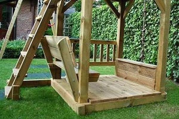 Extra vloertje onderin de speeltoren incl. ondersteuningsbalk in het midden. Uit 28 mm. dik geimpregneerd en gewaxed vuren hout.