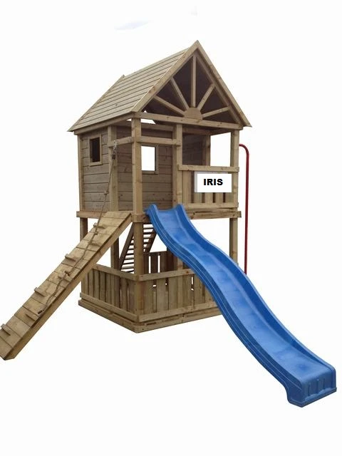 Robuust speelhuis uitgevoerd in geimpregneerd Douglas hout met riante afmetingen en veel speelmogelijkeden. Onder in het speeltoestel is een grote ruimte waar u van alles mee kunt doen. Van opslag voor speelgoed tot loungeruimte voor de kinderen.
