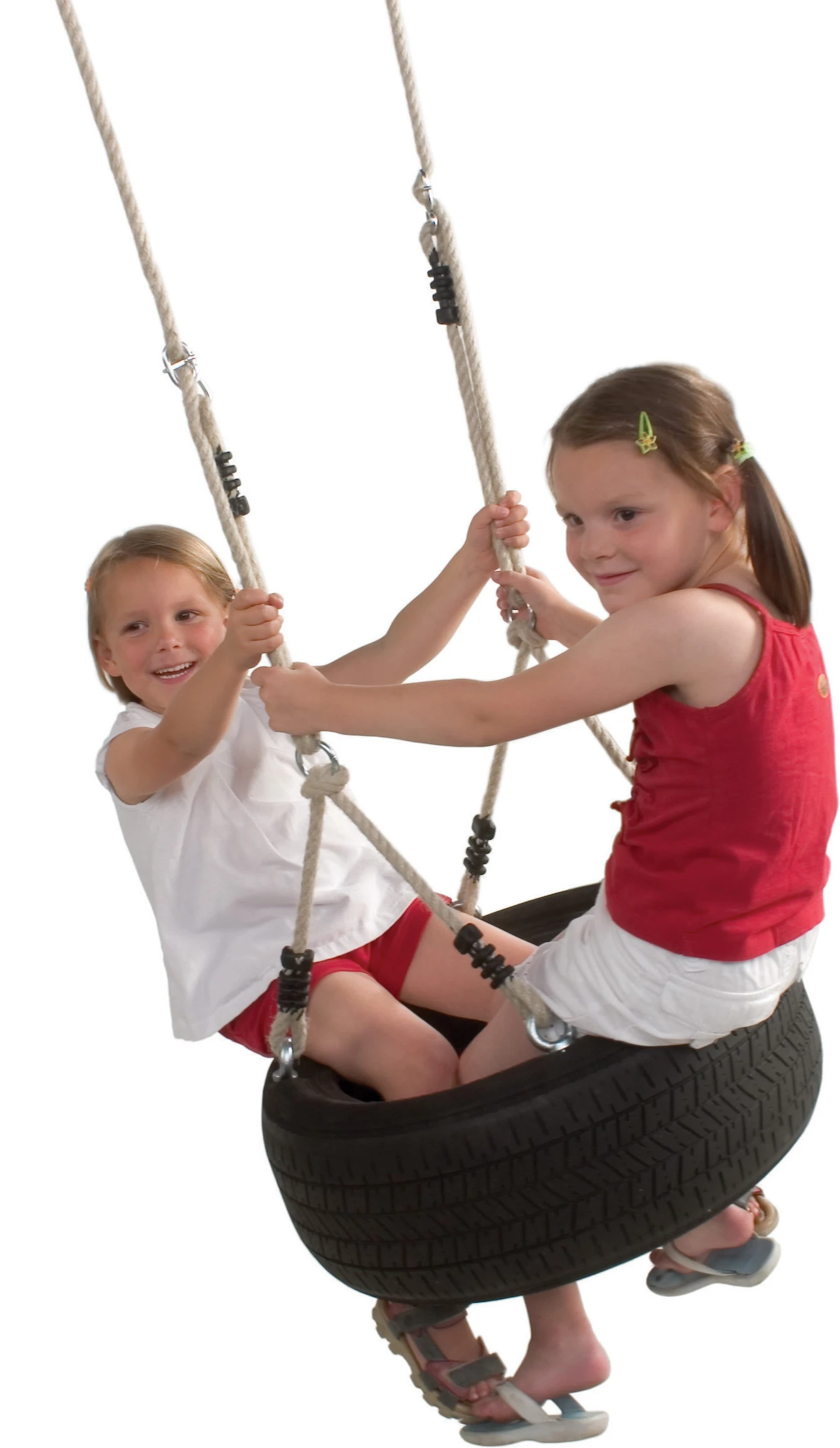 Touwenset uit 10 mm. PolyPropyleen voor een horizontale autobandschommel.
