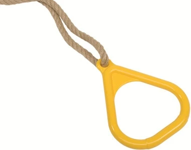 Deze driehoeksringen hebben een doorsnede van 14,5 cm. en geel van kleur. Compleet met 10mm. PP-touwenset. De volkunststof ringen worden geleverd incl. de 10 mm. PP-touwenset, welke voorzien zijn van gegalvaniseerde stelachten en ophangogen en de touwverbindingen zijn uitgevoerd met kunststof lassen.