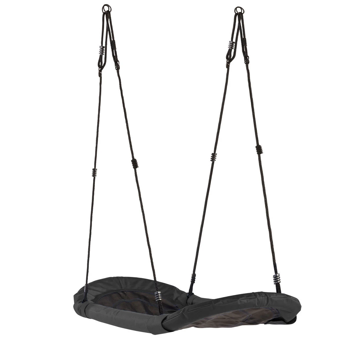 Nestschommel ‘Sampa’ Zwart is door zijn unieke ovale vorm en het extra groot zitoppervlak de ideale schommel voor heel veel schommel plezier.
